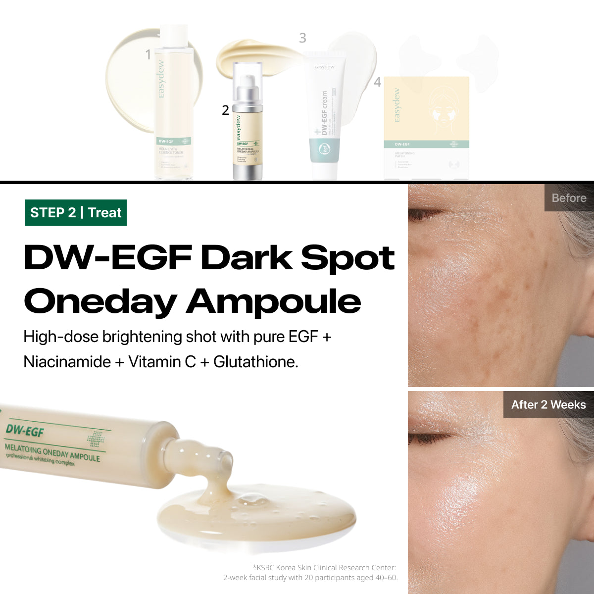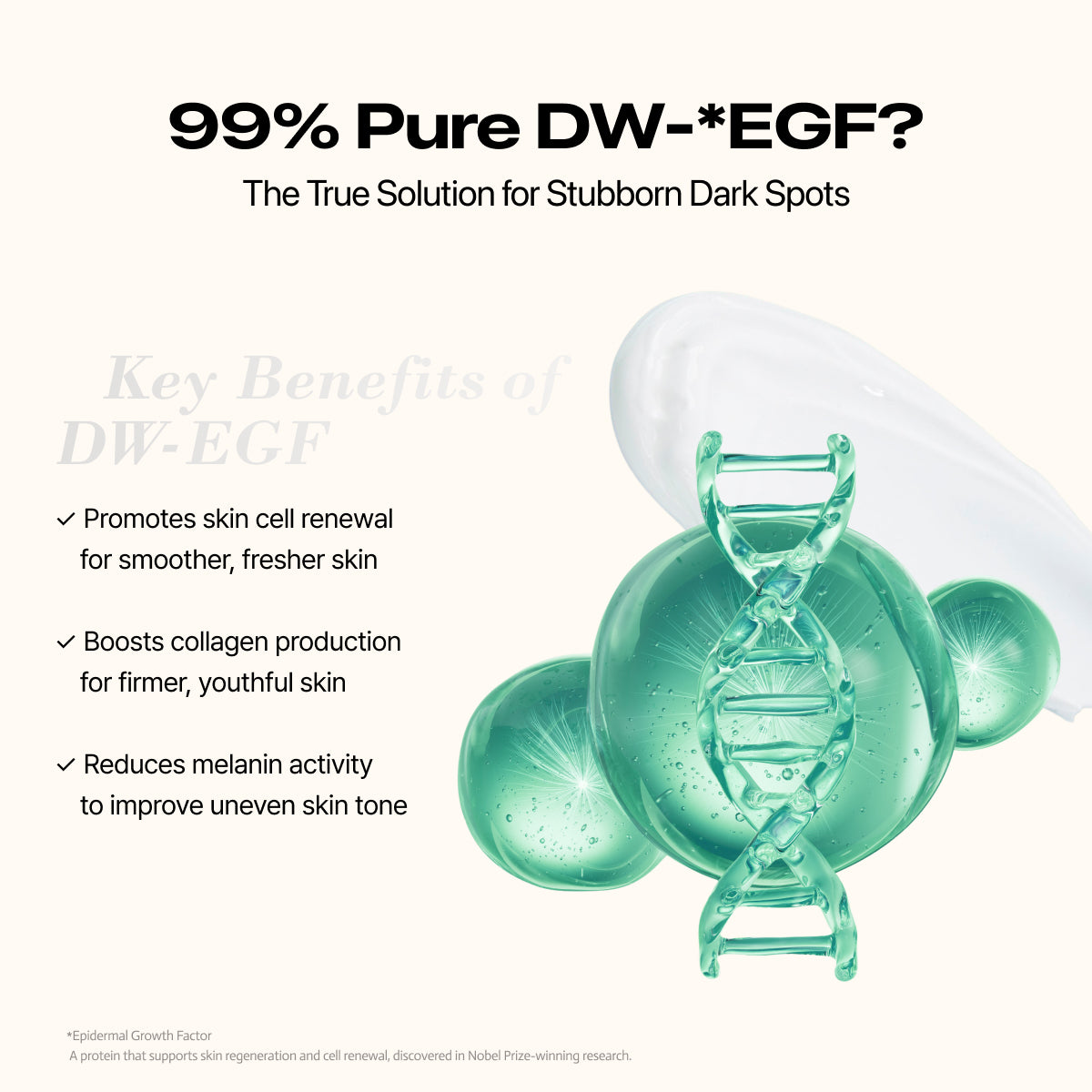 - Combines the power of vitamin C, glutathione, and 99.9% pure DW-EGF for targeted radiance